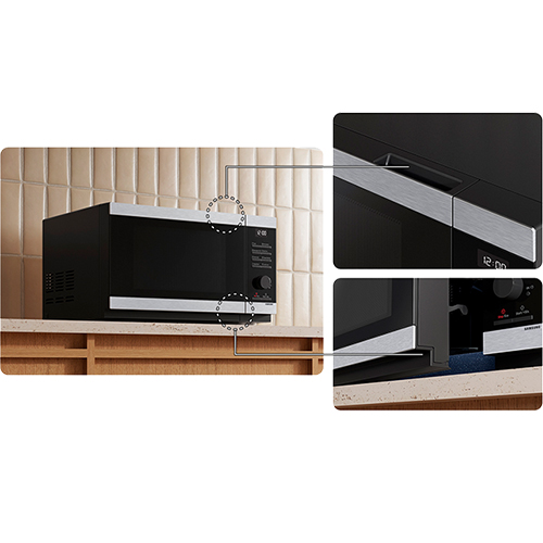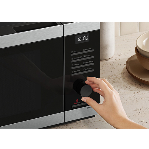 Transforme su cocina en un espacio con un toque ultramoderno, con un diseño elegante y sin fisuras. Resaltado por una puerta plana minimalista con detalles de acero inoxidable y manijas empotradas ubicadas tanto en la parte superior como en la inferior, este diseño irradia elegancia mientras que puede abrir la puerta cómodamente usando cualquiera de las manijas – Ahorre tiempo descongelando ingredientes congelados. Power Defrost ofrece opciones para 5 tipos de alimentos comunes: carne, aves, pescado, pan/pasteles y fruta. Ingrese el tipo y el peso y calculará el tiempo y la potencia de descongelación óptimos, lo que le permitirá preparar los ingredientes rápidamente y conservar los nutrientes – Experimente una experiencia de cocina eficiente y sin complicaciones con nuestro panel de control fácil de usar. Con solo un puñado de botones para administrar las funciones esenciales que se usan comúnmente, junto con un dial para una mayor facilidad de uso y un control preciso, puede seleccionar y ajustar fácilmente las configuraciones para satisfacer sus necesidades – Simplifique la limpieza posterior a la cocción sin esfuerzo.