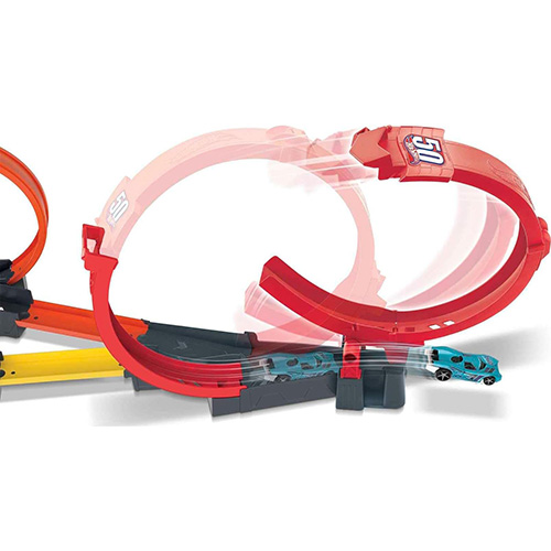 ¡Este conjunto Multi-Loop Raceoff de Hot Wheels ofrece carreras frenéticas y llenas de loopings! Vuela por el circuito y atraviesa los loopings para conseguir puntos. Sé el primero en cruzar el looping gigante y haz que se rompa para que los demás corredores muerdan el polvo. Con este divertido circuito pueden jugar tanto uno como varios jugadores. En el modo de un solo jugador, el circuito puede extenderse más de 60cm, con cinco emocionantes loopings en un mismo tramo. Incluye un vehículo de Hot Wheels. Combina este conjunto con otros conjuntos para vivir más aventuras de carreras y acrobacias (los otros conjuntos se venden por separado). No compatible con todos los vehículos de Hot Wheels. Los colores y la decoración pueden variar.