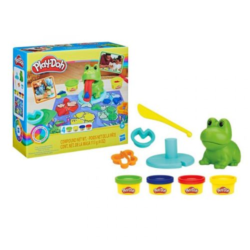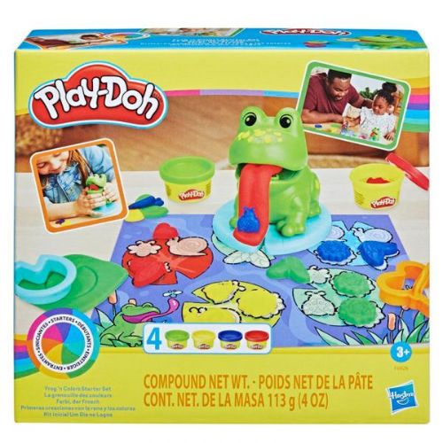 Con el set inicial de Frog ‘n Colors! Haz crecer una lengua larga y tonta para la rana de juguete y haz bichos Play-Doh con los moldes que hay debajo. Haz nenúfares y mariposas con los cortadores y 4 divertidos colores de masa para modelar Play-Doh de 28 gramos. Involúcrelos en divertidas actividades de clasificación y combinación clasificando los insectos por color en el tapete de juego. Ya sea su primer set inicial de Play-Doh o un regalo, ¡déjales descubrir la alegría de los sets Play-Doh!