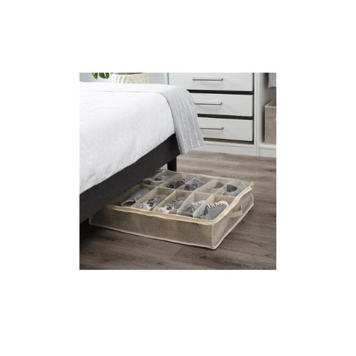 Puede guardar 12 pares de zapatos debajo de la cama. La funda con cremallera protege los zapatos del polvo y los daños. Material transpirable no tejido 100% PP Se pliega rápidamente para guardarlo cuando no está en uso. Asas útiles para levantar y transportar fácilmente Organiza zapatos, zapatillas y accesorios. Tela resistente y duradera y forro de cartón dividido. Infinitas formas de utilizarlo no solo para guardar zapatos