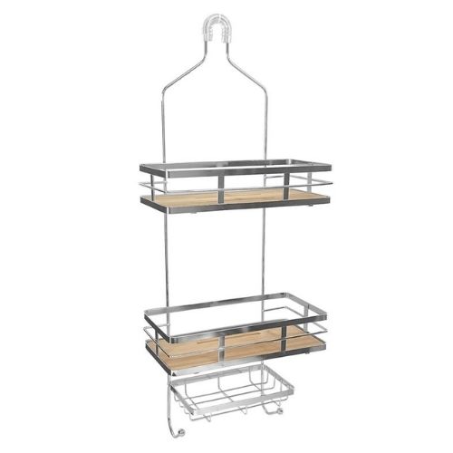 Amplio espacio con cesta de múltiples niveles y jabonera. Diseñado para no resbalarse del grifo de la ducha.
