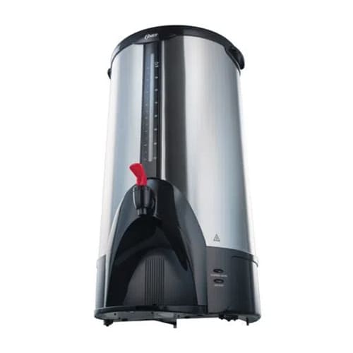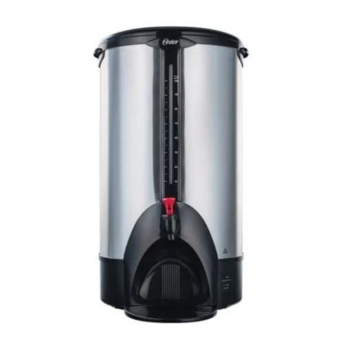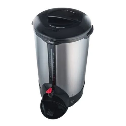 Ahora es posible disfrutar todo el sabor, aroma y textura de un buen café sirviendo hasta 100 tazas y respetando su esencia hasta la última gota. Además, gracias a la función automática, mantendrás el café caliente el tiempo que desees. Fabricado de doble capa de acero inoxidable para mayor durabilidad. Indicador de nivel de café fácil de leer. Luz indicadora que señala cuando el café está listo para servir. Función de protección que apaga la unidad automáticamente si no tiene agua adentro. Marcas interiores que indican el nivel de agua para un llenado fácil y exacto. Función automática para mantener el café caliente. Asas laterales resistentes al calor que permiten mover la percoladora cómodamente. Bandeja de goteo removible y fácil de limpiar. Tiempo de colado de menos de 45 segundos por taza.