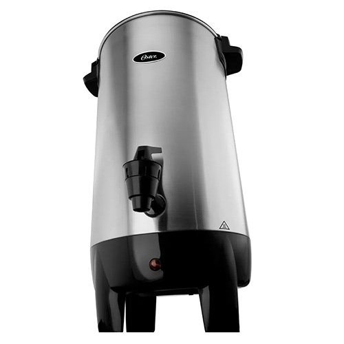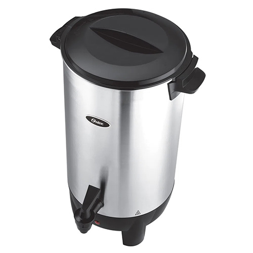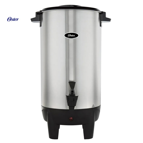 Gracias a la función automática, mantendrás el café caliente el tiempo que desees. Capacidad de 45 tazas. Fabricado de acero inoxidable cepillado. Luz indicadora que señala cuando el café está listo para servir. Función de protección que apaga la unidad automáticamente si no tiene agua adentro. Marcas interiores que indican el nivel de agua para un llenado fácil y exacto. Asas laterales resistentes al calor que permiten mover la percoladora cómodamente. Tiempo de colado de menos de 1 minutos por taza.