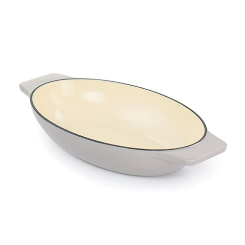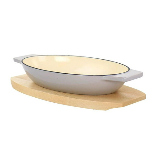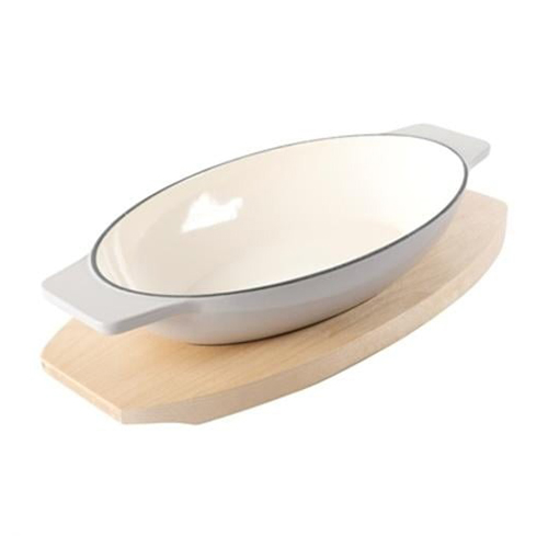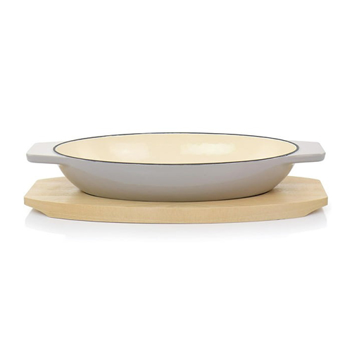 Lleve comidas calientes recién salidas del horno a la mesa con el juego de salvamanteles de madera de abedul y cazuela ovalada de hierro fundido esmaltado de 2 piezas de Martha Stewart en color topo. Este juego de servir incluye una cacerola ovalada apta para horno con base de madera de abedul para una presentación perfecta. Independientemente de qué tan caliente esté la pieza de hierro fundido esmaltado, la base de madera protege los espacios de la mesa y el mostrador del calor. El juego no es apto para lavavajillas; lave a mano la cacerola de hierro fundido y limpie el salvamanteles de madera con una toalla húmeda. Cocine una variedad de comidas como macarrones con queso al horno, fajitas de carne o Bibimbap.