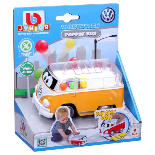 Volkswagen Poppin’ bus BBurago junior Este adorable Volkswagen tiene cuentas que hacen pop en la cabina cerrada, lo que permite a los conductores jóvenes retirarlo, soltarlo para ver cómo se abren las cuentas, aprendiendo la causa y el efecto con un divertido sentido visual. ¡No necesita pilas!