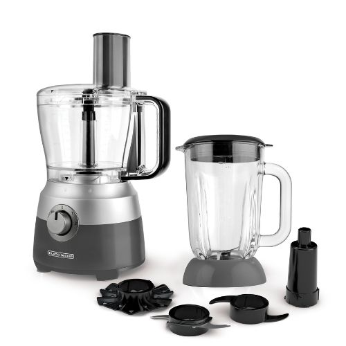 Con un motor feroz de 600 watts es una pieza de maquinaria resistente que desempeña de una forma tan excelente como luce. Especificaciones 600 watts de potencia Recipiente de procesamiento de 10 tazas Jarra licuadora de vidrio de 1,5 L 2 velocidades + pulso Tubo de alimentación de boca ancha con un empujador de alimentos Sistema de cierre de seguridad mejorado Perilla de control de velocidad fácil de usar Accesorios Incluidos: Disco de acero inoxidable para rebanar y rallar; cuchilla para picar de acero inoxidable; cuchilla para hacer texturas cremosas; cuchilla para masa Piezas aptas para lavavajillas