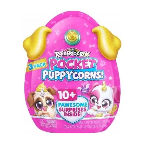 Los Pocket Puppycorns son la última incorporación a tu colección de mascotas. Estos adorables cachorritos están hechos para ser tus mejores amigos. Son tan pequeños que caben en tu bolsillo. ¡Son perfectos para llevar de paseo! Dentro del paquete encontrarás 10 sorpresas, incluyendo slime, pegatinas y un portalápices. Hay 12 cachorros en la colección.