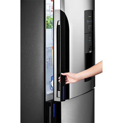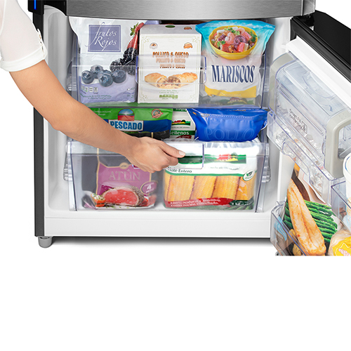 Refrigerador con parrilla media de cristal templado; cualquier envase y cualquier olla cabe aquí ¡compruébalo! Ajusta la parrilla media de acuerdo tus necesidades. Tecnología Home Energy Saver; ahorro de energía, mejor conservación y mayor frescura de los alimentos. Hasta 25% de ahorro de acuerdo a la NOM-015. Display Táctil; control de funciones: vacaciones, alarma, seguro para niños, nivel de frío, indicador de ahorro de energía y Power Cool. Luz en jaladera; alerta lumínica que cambia su intensidad cuando se queda abierto. Iluminación LED. Desmolador de hielos en puerta; no te compliques: saca todos los hielos en un cómodo movimiento. Tú decides cuándo llenar el tanque de agua para tener hielos y enfriar todas tus bebidas. Despachador de agua; el agua siempre estará fresca y sin sabores añadidos, justo como te gusta. Anaqueles de gran capacidad; aprovecha cada espacio para mantener fresco todo el súper de la semana.
