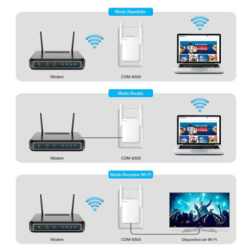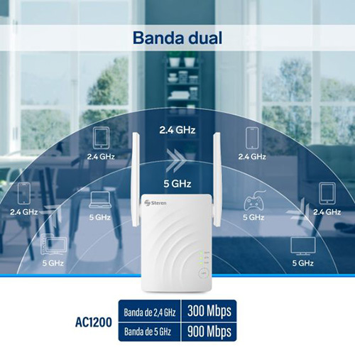 Este equipo extiende la cobertura de tu señal Wi-Fi para que puedas navegar en Internet en los lugares donde no tienes acceso. Elige el modo que más se acomode a tus necesidades de conexión: Repetidor: Deja los cables a un lado y vincúlalo de forma inalámbrica al módem, para extender la red Wi-Fi hasta 40 metros / Punto de Acceso (AP): Además de su uso principal, puedes conectarlo al módem de forma alámbrica y llevarlo hasta 90 metros, para convertir una red alámbrica en inalámbrica con cobertura de hasta 40 metros (En áreas libres de obstáculos y en línea de vista) – Doble banda: Permite conexión en dos bandas de frecuencia diferentes: 2,4 GHz: Amplia cobertura de Wi-Fi, ideal para navegar en Internet desde dispositivos como computadoras o celulares / 5 GHz: Más velocidad de transmisión de datos, menor saturación y mayor número de dispositivos conectados de manera simultánea. Ideal para streaming en consolas o Smart TV y conexión de dispositivos IoT – Smart Wi-Fi: Su tecnología de transmisión inteligente combina las señales de ambas frecuencias bajo un solo nombre Wi-Fi y el equipo determina, según los datos y ancho de banda utilizados en cada equipo, en que banda transmitirá – Conexión alámbrica: Tiene 1 puerto Fast Ethernet (Hasta 100 Mbps) para conectar aparatos como Smart TV, Blu-ray o Home theater y la transmisión de datos sea más estable y constante – Velocidad máxima de transferencia de datos: 300 Mbps (2,4 GHz) / 867 Mbps (5 GHz) de forma inalámbrica.