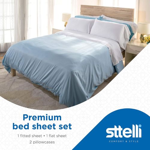 100% algodón peinado con un tejido de satén de 300 hilos, la sábana de cama Siesta tiene un tacto ultrasuave y un hermoso diseño crea una experiencia de sueño lujosa. Juego de sábanas de alta calidad: el juego completo de sábanas de algodón de 4 piezas de Sttelli incluye 1 sábana bajera, 1 sábana encimera y 2 fundas de almohada. Las sábanas bajeras tienen elástico y una caída de 15.0 in para un ajuste perfecto.