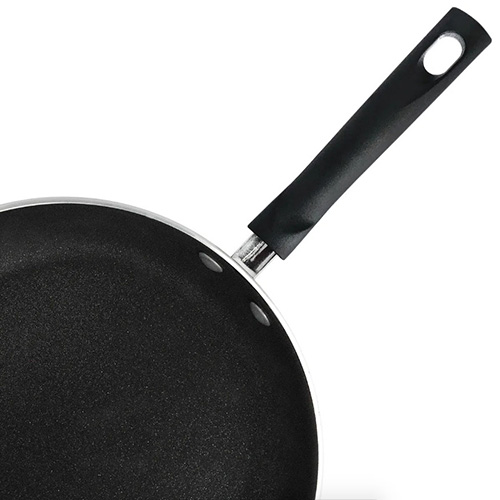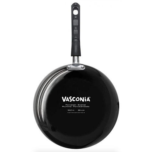 Sartén de 26cm. Vasconia Master de Aluminio porcelanizado con Antiadherente Duraflón® EXTRAx10 con Tecnología Moonscape de Whitford con una resistencia de hasta 50,000 ciclos que además es capas de resistir utensilios de metal. Hecho 100% de Aluminio el mejor conductor y de fácil limpieza. Además tiene un espesor de 2.5mm. Cuenta con mango remachado de baquelita “Soft Touch” suave al tacto.