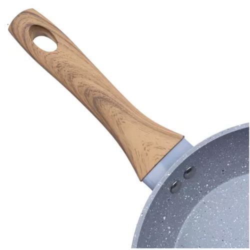 El mango de madera y baquelita proporciona un agarre cómodo y seguro, permitiéndote cocinar con confianza y estilo. El diseño antiadherente de cerámica en su interior asegura que tus alimentos se cocinen de manera uniforme y que se deslicen fácilmente fuera de la sartén sin dejar residuos. Apto para lavavajillas