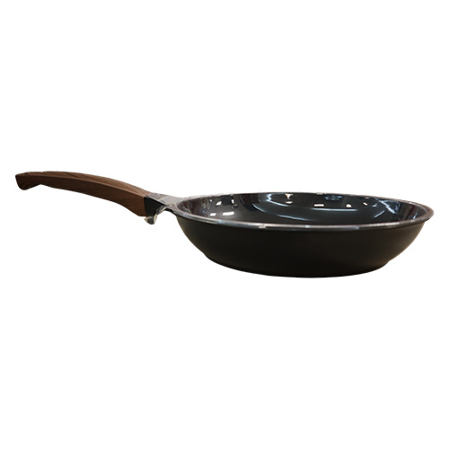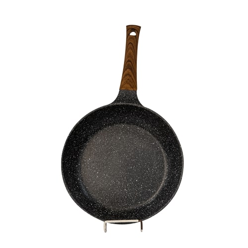 Sartén con antiadherente con un radio de 28 centímetros y un mango hecho de imitación de madera.