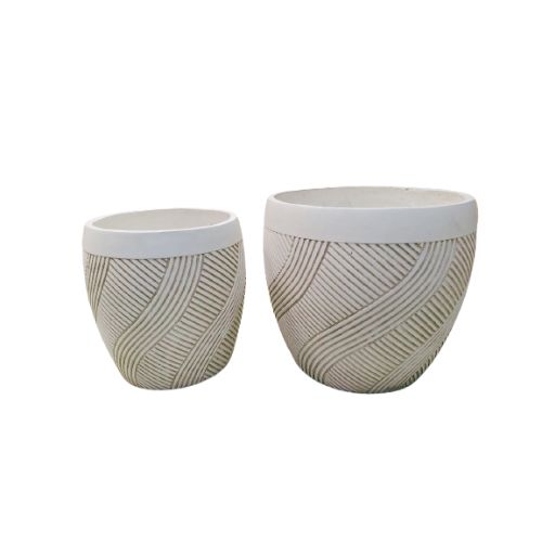 Este set de dos macetas en diferentes tamaños es ideal para plantas y decoraciones. Con diámetros de 42 cm y 32 cm respectivamente, estas macetas son versátiles y funcionales para embellecer tu jardín, patio o espacio exterior.