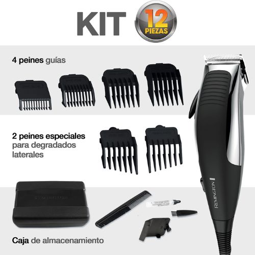 De calidad profesional y robustas cuchillas de corte de acero inoxidable, nuestra máquina de cortar pelo Remington Grooming Kit tiene un diseño ergonómico para un mejor control, mayor comodidad y un potente motor que corta todo tipo de cabello. Uso con cable. Las hojas tienen un movimiento perfectamente lineal para cortes precisos