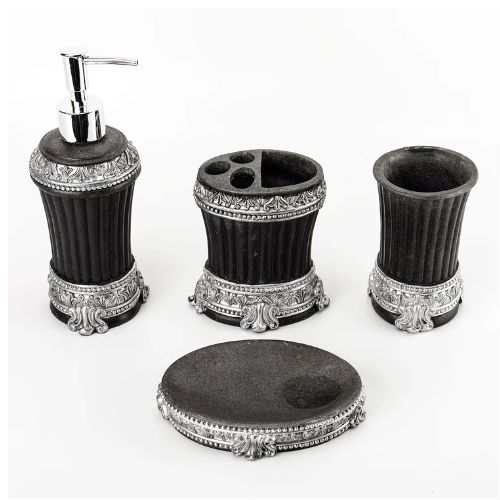 Juego de baño de resina 4 piezas. Dispensador de jabón, 1 vaso, 1 portacepillo, 1 jabonera