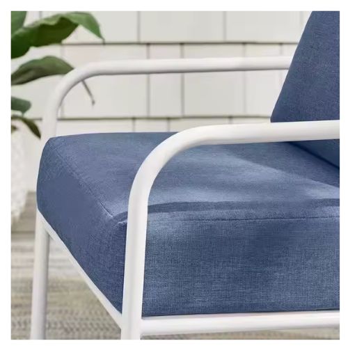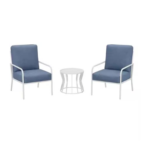 Conjunto de jardín de 3 piezas con cojines azules.