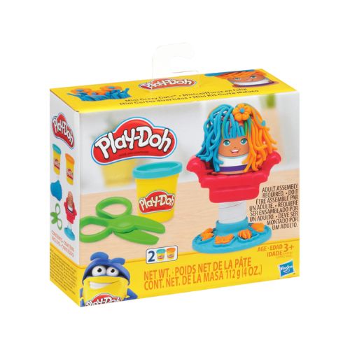 Play-Doh Barber, el clásico y atemporal set de juego, ahora disponible en un práctico tamaño mini para divertirse. ¡Diversión portátil para llevar a todas partes! Deja que tu cabello crezca y crea peinados alocados para tu cliente con la ayuda de la silla de barbero, tijeras y cuchillas de afeitar aptas para niños, y 2 frascos de plastificante Play-Doh no tóxico.