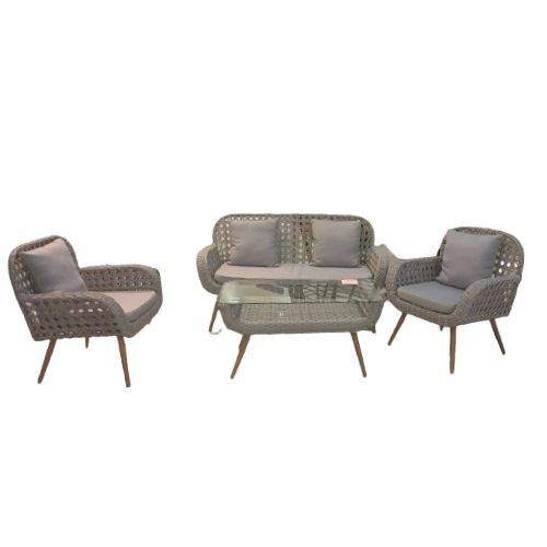 Eleva el confort de tu espacio exterior con este elegante set de jardín, compuesto por un cómodo sofá, dos sillones y una mesa. Ideal para compartir momentos al aire libre, su diseño combina estilo y funcionalidad, perfecto para cualquier patio o terraza.