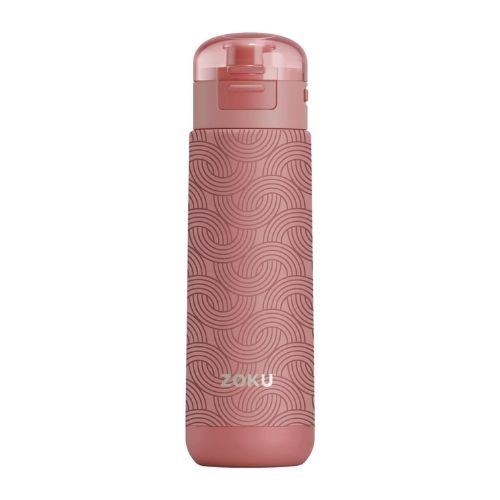 Esta botella de agua con aislamiento al vacío Zoku está fabricada con un cuerpo de acero inoxidable 18/8 resistente a la corrosión y mantiene el agua fría durante más tiempo. Con un acabado de pintura en polvo duradera, se abre fácilmente con solo presionarla para acceder a la boquilla de alto flujo. Este diseño se completa con un cierre y una correa de transporte suave al tacto.
