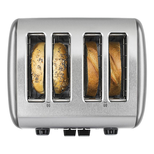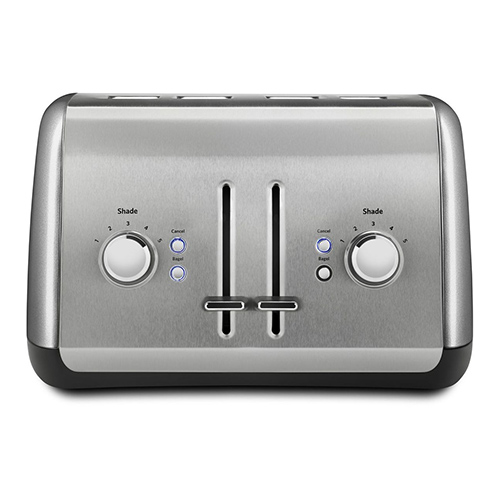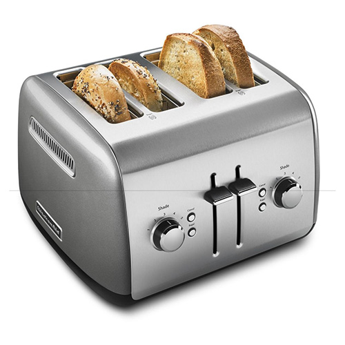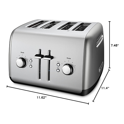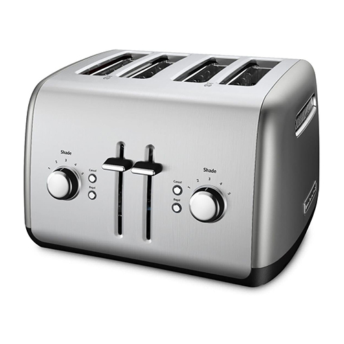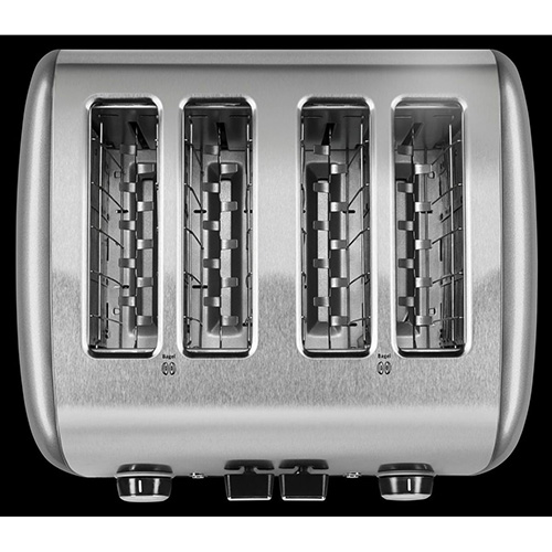 Las 4 anchas ranuras permiten tostar una gran variedad de panes, desde bagels hasta panecillos ingleses, panes gruesos y mucho más – Haz pan tostado para más de uno, justo como a cada uno le gusta, al mismo tiempo, con los dos controles independientes – Diseñado para tostar el bagel en su punto: la resistencia de un lado se reduce un 50% para dorar suavemente la parte exterior del bagel, sin dejar de tostar el interior – Tu pan tostado, como a ti te gusta, con el control de tono ajustable, que incluye 5 posiciones, de claro (1) a oscuro (5) – Tanto si el pan es grande como pequeño, es fácil acceder a él en la tostadora con la palanca de elevación – Retira fácilmente las migas de pan de la tostadora con la bandeja extraíble para migas. Lavar exclusivamente a mano – El modelo KMT4115 incluye 1 tostadora, 1 bandeja extraíble para migas.