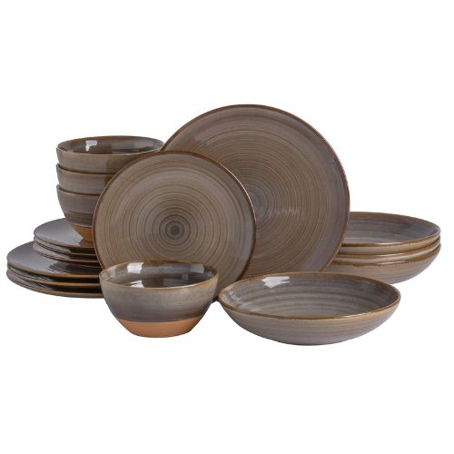 Aporta un toque de estilo natural a tu mesa con el juego de vajilla Gibson Elite Dreamweaver de 16 piezas con dos cuencos. Cada pieza de este juego aporta un toque de moda contemporánea a la mesa con una silueta suave y un acabado artesanal de esmalte reactivo que acentúa un color vibrante.