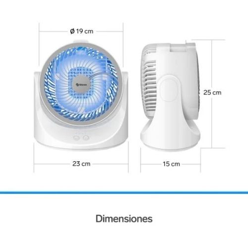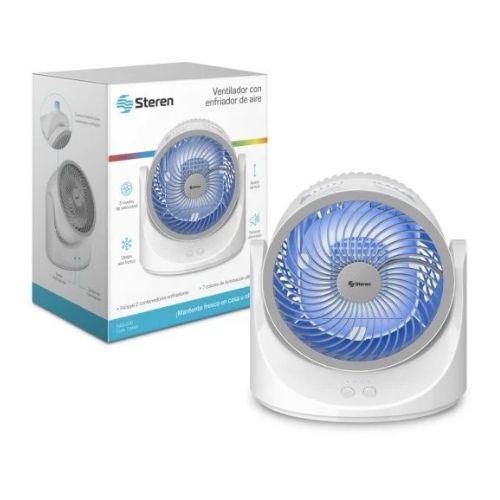 Tiene 3 velocidades (1600 / 1800 / 2000 r/min) fácilmente seleccionables con un botón. Incluye un recipiente con un polvo especial, que al combinarlo con agua se forma un gel especial, para congelarlo y después colocarlo en un compartimento de la parte frontal del ventilador, así tendrás aire mucho más fresco. Incorpora un eje central que permite mover verticalmente el cabezal y dejarlo en la mejor posición para distribuir el aire.Tiene iluminación LED para que elijas algún color y darle un toque decorativo al espacio donde tengas el ventilador. Congela su gel especial para obtener aire aún más fresco. Ajuste vertical manual de 90°. Sistema silencioso. Incorpora luz LED decorativa. Incluye 2 contenedores enfriadores. Dimensiones del contenedor: 15,5 cm de alto (incluyendo tapa) x 11,5 cm de ancho x 3,4 cm de profundidad. Incluye cable USB a USB C de 1,45 m.